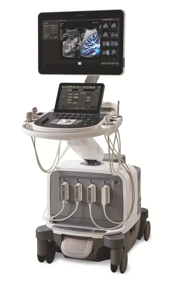 Тип: стационарный экспертный УЗИ-аппарат на тележке для общей визуализации и акушерства.​