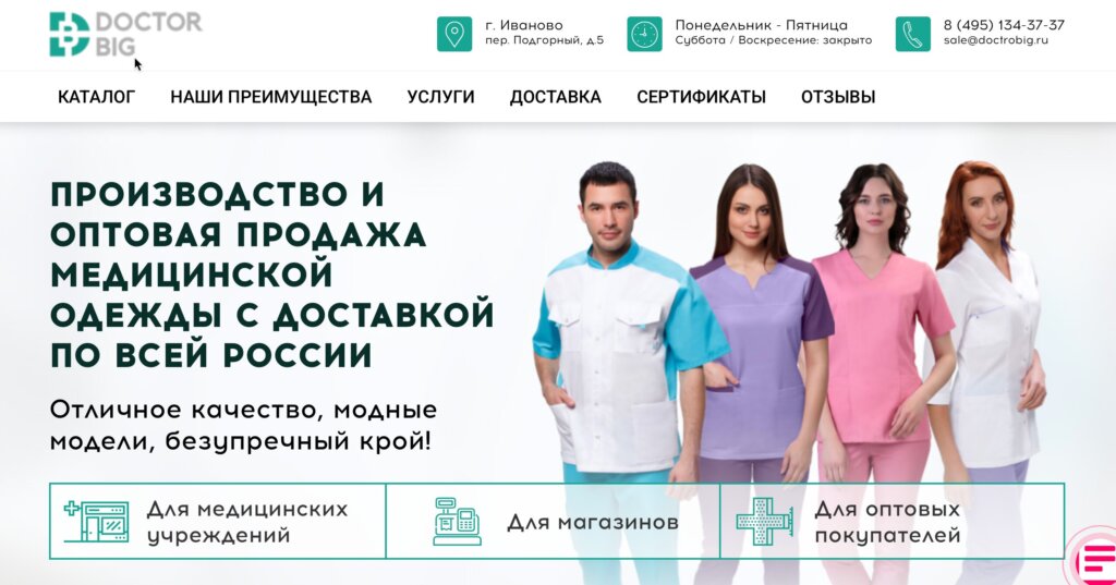 Doctor Big – один из старейших и крупнейших российских производителей медодежды. Компания основана в 2000 году в г. Иваново и с тех пор стала одним из лидеров рынка спецодежды для здравоохранения. Успех «Доктор Биг» обусловлен использованием передовых технологий пошива, современного оборудования и команды профессионалов, что позволяет создавать стильные и качественные изделия в сжатые сроки. Вся продукция сертифицирована по медицинским стандартам и проходит строгий контроль качества, гарантируя надежность и безопасность униформы.