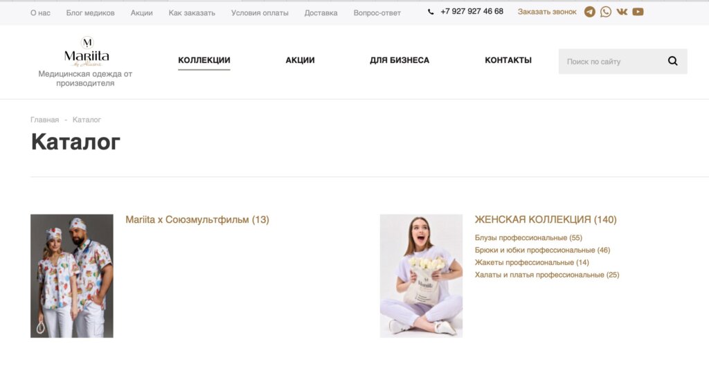 Разработка и пошив женской медицинской одежды с упором на изящный дизайн. В коллекциях Mariita много платьев, блузонов и туник с оригинальными элементами, позволяющих подчеркнуть индивидуальность, соблюдая дресс-код.
