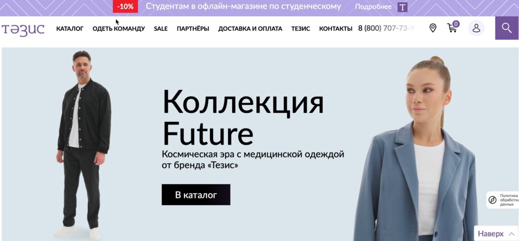 Тезис – российский бренд медицинской одежды, выделяющийся высочайшим качеством и продуманным дизайном униформы. Компания тщательно прорабатывает крой с точки зрения эргономики, чтобы врачи и медперсонал чувствовали себя комфортно и свободно в движениях на протяжении всей смены. Ассортимент «Тезис» охватывает все необходимое: от медицинских шапочек до брюк и халатов, позволяя полностью экипировать клинику в едином стиле.