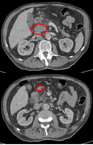Частичный регресс (ПЭТ/КТ от 20.09.2023): уменьшение толщины стенок антрального отдела желудка, уменьшение размеров забрюшинных лимфатических узлов, уменьшение канцероматоза, регресс асцита. Терапия конъюгатом Трастузумаб эмтазин № 5 (02.11.2023 — 25.02.2024, с учетом исследования Oncobox, впервые в мире!).