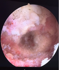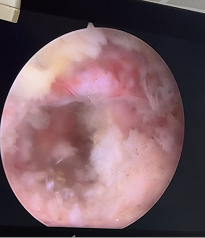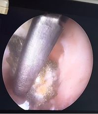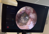 Рис. 3. Вид интраоперационной раны на экране монитора после выделения осколка перед его удалением.