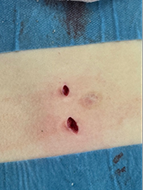 Рис. 2. Этап доступа и внешний вид операционной раны кожи и на ЭОП-контроле.