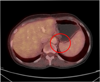 Эпителиальная мезотелиома брюшины, ТxN0M0. Циторедуктивная операция (оментэктомия, париетальная перитонеумэктомия тотальная, экстирпация матки) + HIPEC (цисплатин + доксорубицин) от 08.08.2023. Химиотерапией HIPEC называют новаторскую разновидность лечения злокачественных новообразований. Эта процедура подразумевает прямое воздействие на опухолевые клетки разогретыми химиопрепаратами. Прогрессирование (ПЭТ/КТ от 21.09.2023; до операции ПЭТ/КТ не выполняли): инфильтративное образование с повышенной метаболической активностью РФП по брюшине слева на уровне ножки диафрагмы/ дна желудка (SUVmax — 5,34), SUVmax (Maximum Standardized Uptake Value) — максимальный показатель степени накопления радиофармпрепарата (РФП) в выделенной зоне интереса; метастазы во множественных внутригрудных лимфатических узлах (бронхо-пульмональные слева и справа, парастернальный слева с SUVmax 3,47 — 4,6). Таргетная терапия Регорафенибом (Стиварга) с 23.09.2023 г. по н.вр. (со снижением дозы до 120 мг/сут. с учетом нежелательных явлений — ладонно-подошвенный синдром легкой степени). Частичный регресс (ПЭТ/КТ от 20.12.2023): нивелирование инфильтративного образования с повышенной метаболической активностью РФП по брюшине слева (ранее на уровне ножки диафрагмы дна желудка определялось образование 11х8 мм с SUVmaх — 5,34), снижение в динамике метаболической активности РФП во множественных внутригрудных лимфатических узлах (бронхопульнональный слева с SUVmaх — 3,6, размерами до 8х6 мм, ранее SUVmaх — 4,6; бронхо-пульмональный справа с SUVmaх — 3,56 размерами до 9х7 мм, ранее SUVmaх — 4,3; парастернальный слева с SUVmaх — 1,6 размерами до 5 мм, ранее SUVmaх — 3,47). Полный регресс (ПЭТ/КТ 19.03.2024; 24.03.2025).